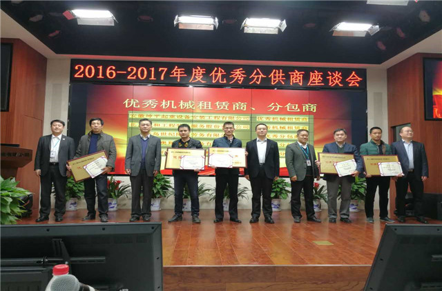 在對優秀機械分供商表彰的環節中,經過中建八局一公司的嚴格考核評價,我司作爲中建八局一公司建築起重設備專業分包商,憑借着專業的施工技術和優質的服務品質榮獲了“2016-1017年度優秀設備供應商”稱号,公司董事長史洪泉上台領獎。