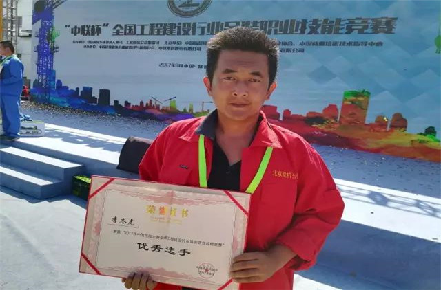 本次“全國塔吊技能競賽總決賽”競賽内容不僅包含起重工高級工的理論知識與操作技能,更考驗選手平日積累的操作技能。我公司北京運營中心32歲的塔吊司機李冬虎,順利通過北京市建設工程物資協會建築機械分會組織的激烈的選拔,作爲行業企業代表參加操作技能大賽。在9月7日的預賽中,憑借着熟練的技術,李東虎出色的完成了起升、回轉和變幅系統的操作,在激烈的角逐中取得了第21名的好成績,并作爲協會選拔的唯一選手進入了決賽,最終在決賽上獲得了優秀選手的榮譽稱号。