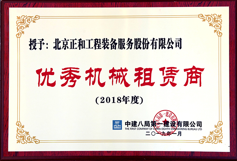 在對優秀分供商表彰的環節中,經過中建八局第一建設有限公司的嚴格考核評價,我公司憑借着專業的施工技術和優質的服務品質榮獲了“2018年度優秀機械租賃商”稱号,這也是公司連續三屆獲得此項榮譽,代表着中建八局第一建設有限公司對正和服務的認可和信賴。公司副總經理楊士江代表公司領取了榮譽證書和獎牌。
