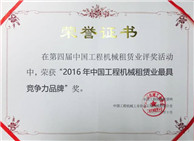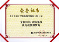 北京正和榮獲2016年中國工程機械租賃業最具競争力品牌