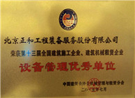 公司榮獲第十三屆全國建築施工企業 建築機械租賃企業 設備管理優秀單位