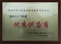 公司榮獲中建八局第一建設有限公司“2016-2017年度優秀設備供應商”
